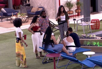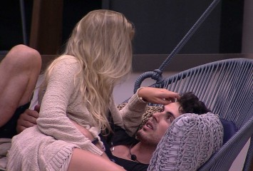 Isabella e Maycon continuam juntinhos, enquanto os outros confinados estão na parte interna da casa...