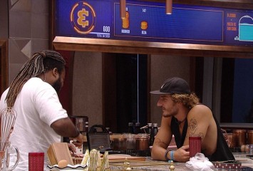 Rodrigo prepara o almoço na cozinha da casa e tem a companhia de Alan. O brother observa o dramatur...
